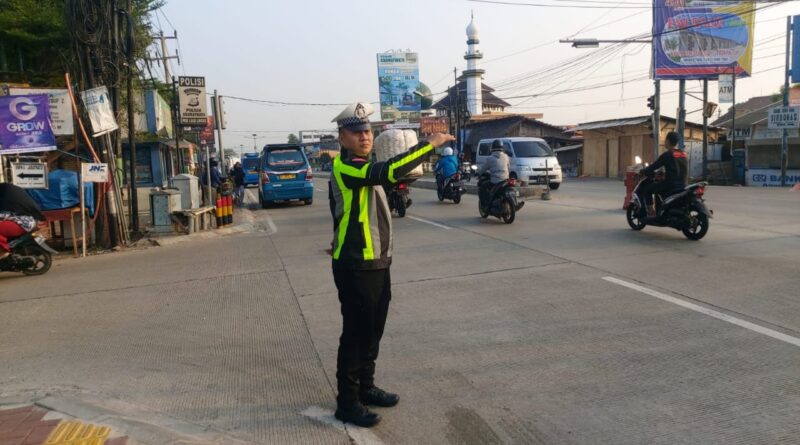 POLRESTA SERKOT_Guna menciptakan situasi kamseltibcar lantas maka dari itu jajaran lalu lintas polsek Kramatwatu Polresta Serkot Polda Banten melaksanakan tugas pengaturan arus lalu lintas