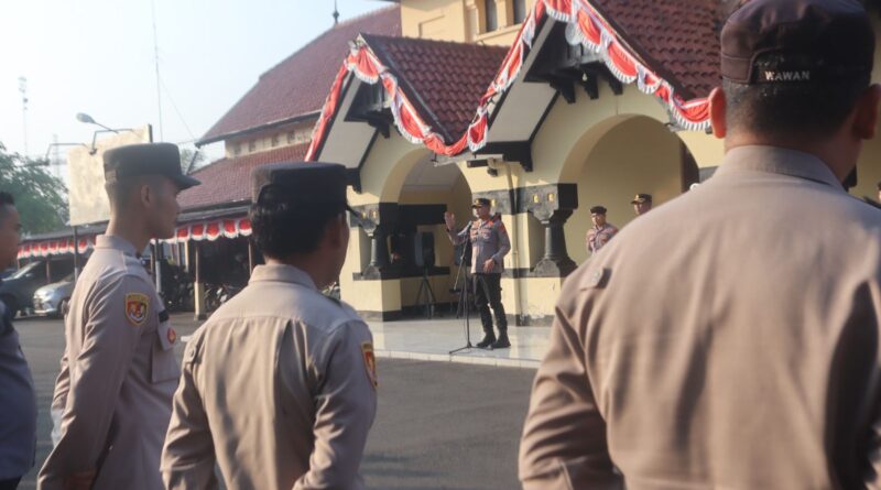 POLRESTA SERKOT_ Personel Polresta Serkot laksanakan apel pagi dilapangan hitam Polresta Serkot pada Selasa, 06/08.