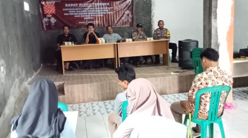 kegiatan rapat pleno terbuka rekapitulasi daftar pemilih hasil pemutahiran ( DPHP ) pada pemilihan gubernur dan Wakil Gubernur Banten serta pemilihan Bupati dan Wakil Bupati Serang tahun 2024 yang berlangsung di aula kantor desa wilayah binaan.