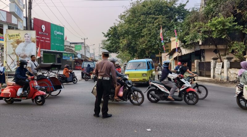 Kanit Lalulintas Polsek Serang Polresta Serkot Pimpin Pengaturan Lalulintas Dipagi Hari