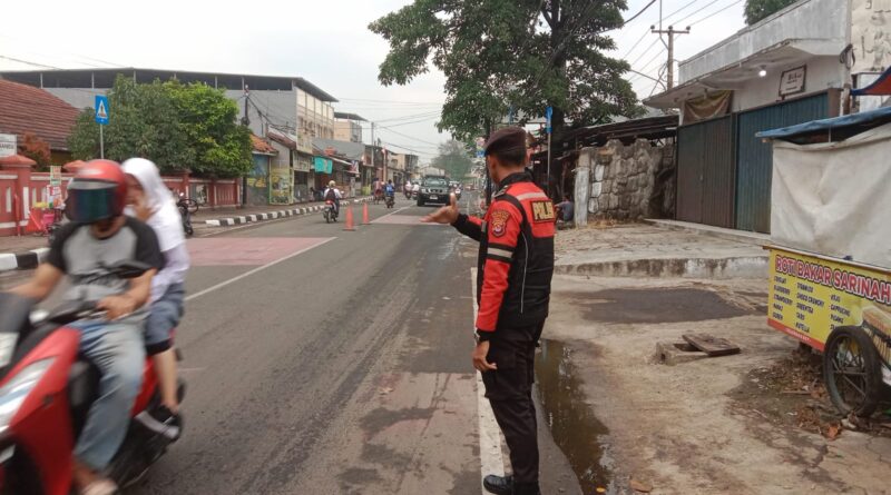 Ciptakan arus lalin lancar, sat samapta Polresta Serkot, lakukan Gatur di SDN Kaligandu kota serang .