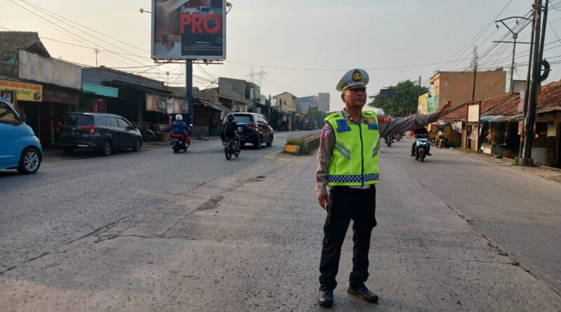 POLRESTA SERKOT_Kanit lalu lintas Polsek Kramatwatu Polresta Serkot Polda Banten Iptu Agus Sutiana melaksanakan pengaturan di jl.serang- cilegon di perempatan serdang desa serdang Kec.Kramatwatu,selasa (13/8/2024)