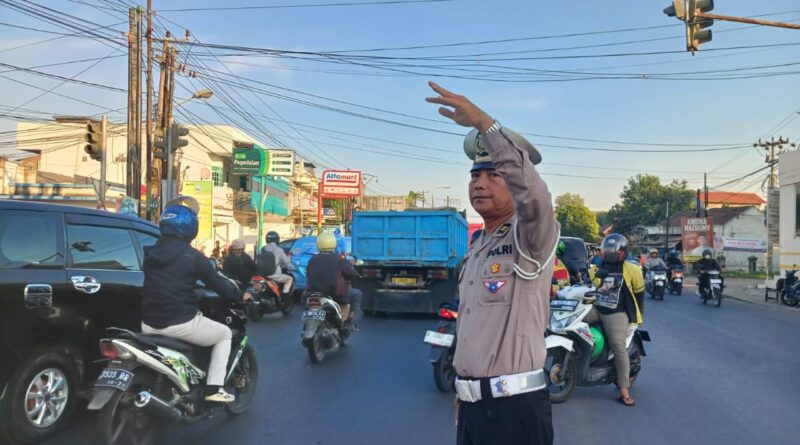 POLRESTA SERKOT_Kanit lalu lintas Polsek Kramatwatu Polresta Serkot Polda Banten melaksanakan pengaturan di jl.serang- cilegon di perempatan serdang Kec.Kramatwatu, senin(12/8/2024)