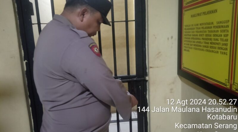 POLRESTA SERKOT_ Anggota piket Polsek Serang Polresta Serkot, melakukan pengecekan dan kontrol ruang tahanan Polsek Serang Polresta Serkot Pengecekan ini dilakukan untuk memastikan kondisi tahanan aman dan terkendali, Selasa (13/08)