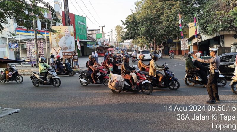 POLRESTA SERKOT_ Panit Lalulintas Polsek Serang Polresta Serkot Polda Banten Aipda Ajis Muslim melaksanakan Pengaturan Lalulintas Dipagi Hari, Rabu (14/08)