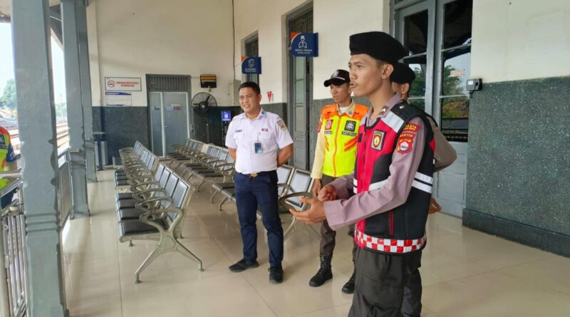 Cegah gangguan kamtibmas, sat samapta MelakukanPatroli dialogis di Stasiun kereta kota serang.