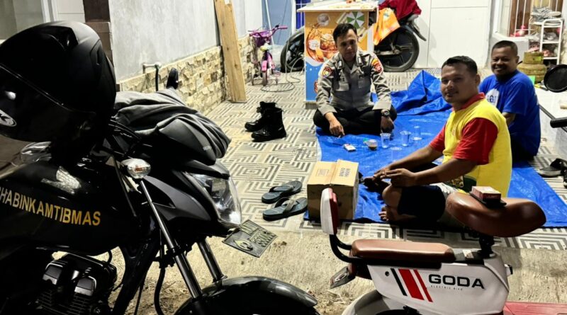 Dalam kegiatan ini Aipda Itang anggota piket Polsek Kramatwatu Polresta Serkot Polda Banten memberikan arahan kepada masyarakat yang sedang melaksanakan ronda agar selalu waspada terhadap segala tindak kejahatan.