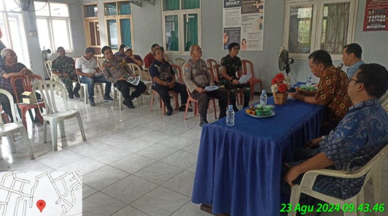 POLRESTA SERKOT_Kanit Binmas Iptu Irwan Bersama Bhabinkamtibmas Polsek Serang Polresta Serkot Bripka Edwin Hadiri Feasibility Study (FS) dan dokumen perencanaan pengadaan tanah Banten Girang Di Kantor Kelurahan Serang, Jumat (23/08)